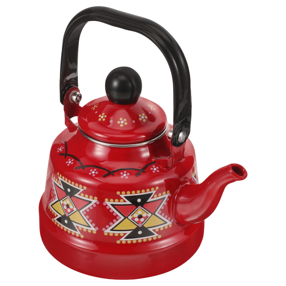 Retro Enamel Teapot Painted Kettle (red Cube Ancient Clock 1.1l) Metal
