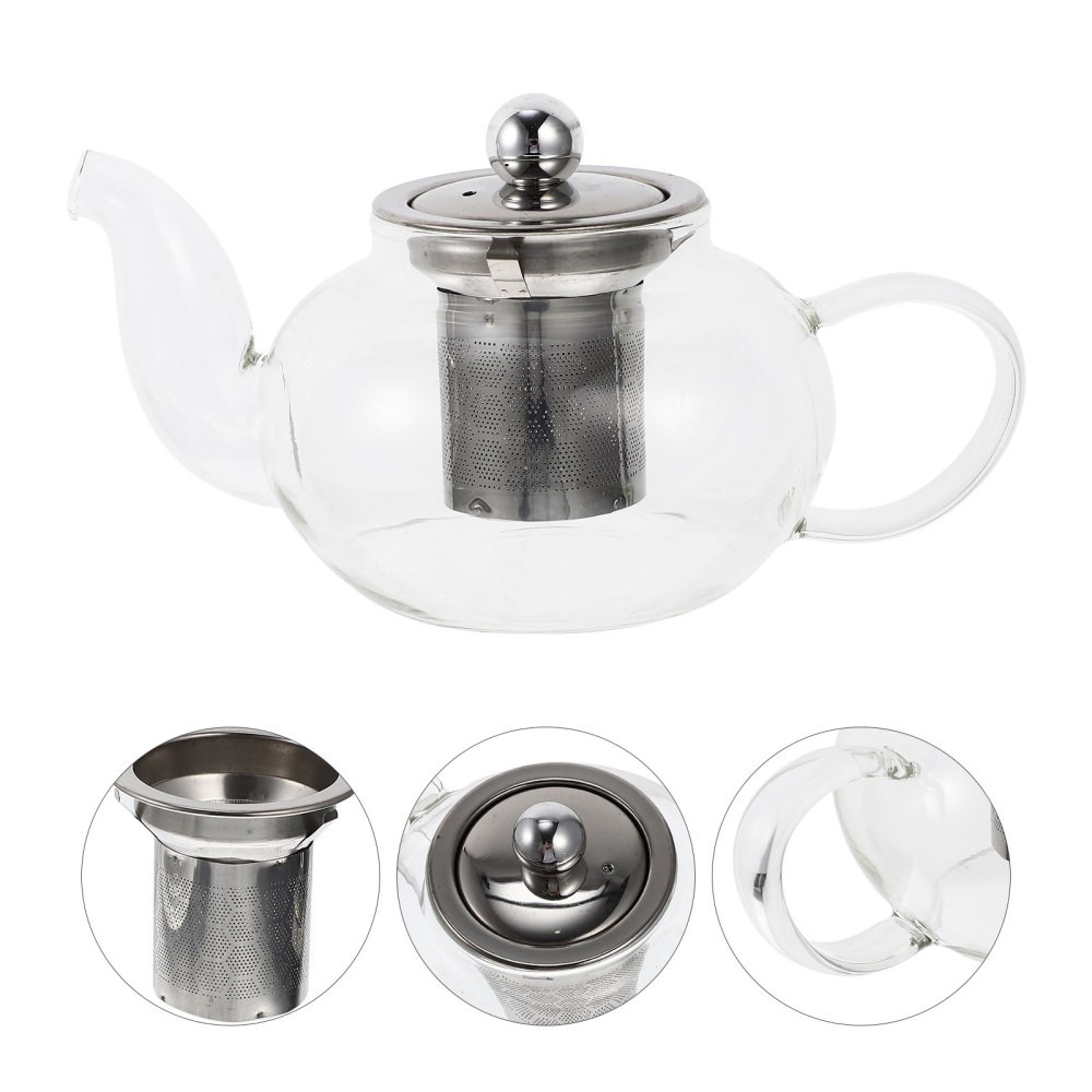 550ml Glass Tea Kettle Heat Resistant Tea Pot Stainless Steel Infuser Strainer